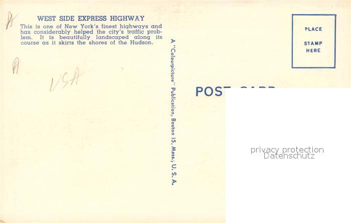 73588811 New York City West Side Express Highway and Hudson River George Washington Bridge Illustration postalisch nicht gelaufen Erhaltung siehe scans [FriedD77] KatCode: 14140340000000