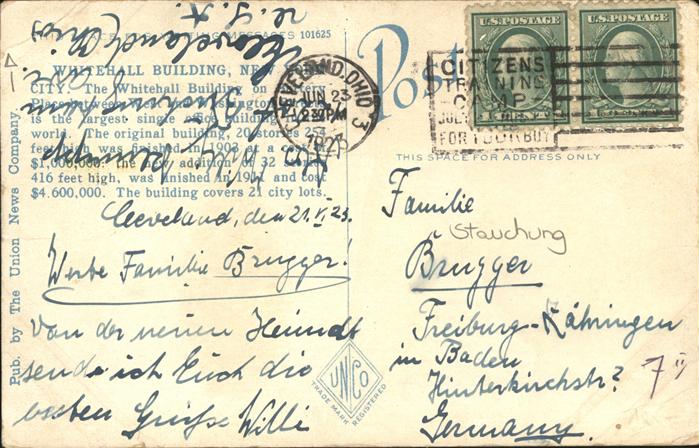 11321309 old postcard New York City Whitehall Building postalisch gelaufen KatCode: 14140340000000