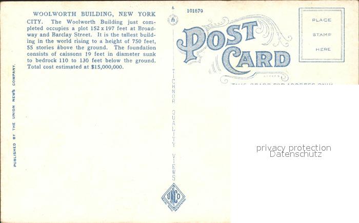 71937937 New York City Woolworth Building postalisch nicht gelaufen KatCode: 14140340000000