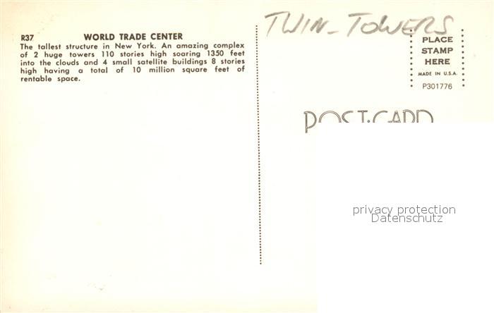 43099669 New York City World Trade Center Twin Towers at night postalisch nicht gelaufen Erhaltung siehe scans [FriedD77] KatCode: 14140340000000