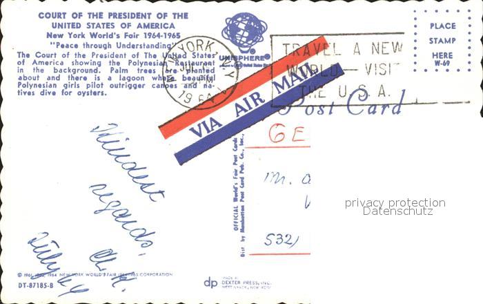 71983354 old postcard New York City Worlds Fair 64 Court of the President of the United States postalisch gelaufen Erhaltung siehe scans KatCode: 14140340000000