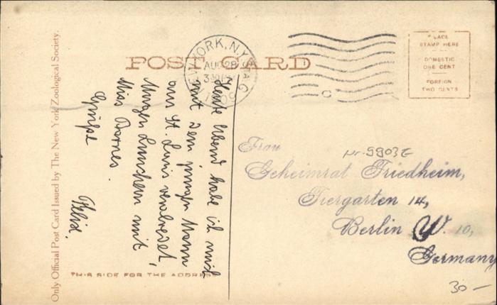 11032911 old postcard New York City Zoological Park postalisch gelaufen KatCode: 14140340000000