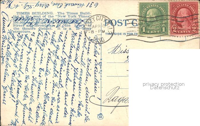 11689207 old postcard New York Mills New York Times Building postalisch gelaufen Erhaltung siehe scans KatCode: 14140340000000
