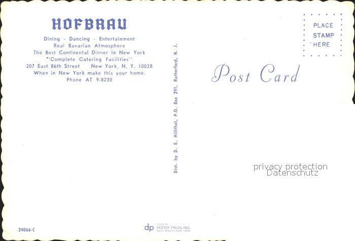 72921208 New York N.Y. Dining Dancing Hofbraeu postalisch nicht gelaufen Erhaltung siehe scans [LiesaD40] KatCode: 14140340000000