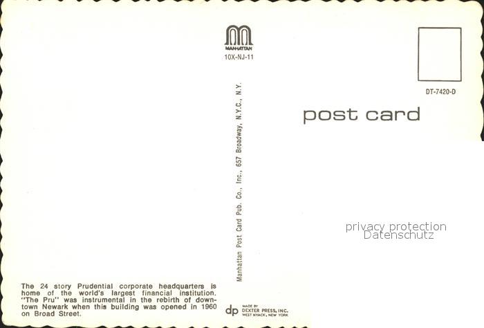 71991807 Newark New Jersey Prudential Insurance Company postalisch nicht gelaufen Erhaltung siehe scans KatCode: 14140320000000