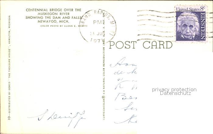 72305934 old postcard Newaygo Bridge over the Muskegon River postalisch gelaufen Erhaltung siehe scans KatCode: 14140240000000