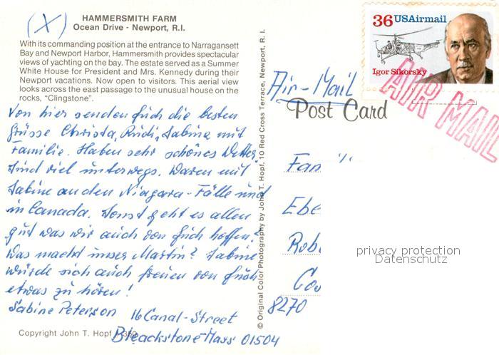 73707211 old postcard Newport Rhode Island Hammersmith Farm Ocean Drive postalisch gelaufen Erhaltung siehe scans [WerneD78] KatCode: 14140420000000