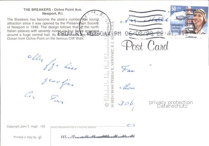 71934733 old postcard Newport Rhode Island The Breakers Ochre Point Ave postalisch gelaufen Erhaltung siehe scans KatCode: 14140420000000