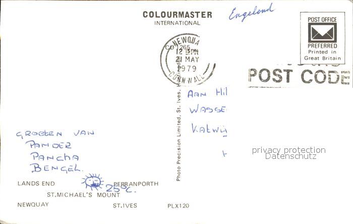 old postcard Newquay Lands End St Michaels Mount Newquay Perr Anporth St Ives postalisch gelaufen Erhaltung siehe scans