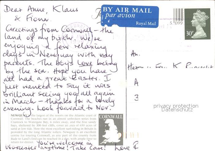 old postcard Newquay Strand Bucht Ruderer postalisch gelaufen Erhaltung siehe scans