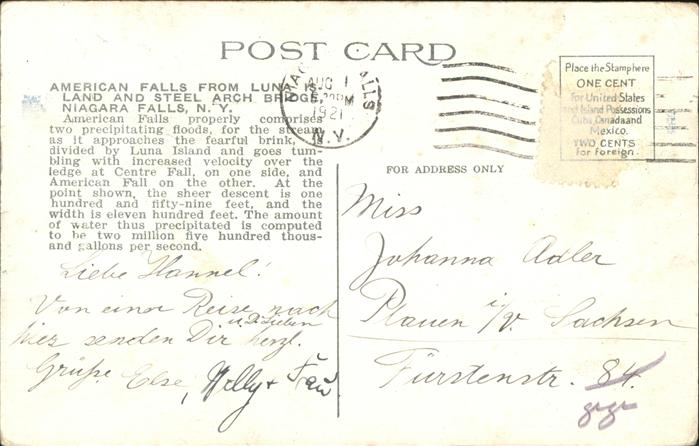 11112240 old postcard Niagara Falls New York American Falls Steel Arch Bridge postalisch gelaufen KatCode: 14140340000000