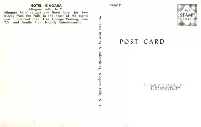 72791158 Niagara Falls New York Hotel Niagara postalisch nicht gelaufen Erhaltung siehe scans [NatalD47] KatCode: 14140340000000