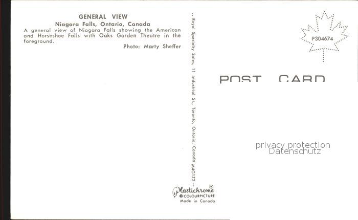 Niagara Falls Ontario American and Horseshoe Falls Oaks Garden Theatre aerial view postalisch nicht gelaufen Erhaltung siehe scans