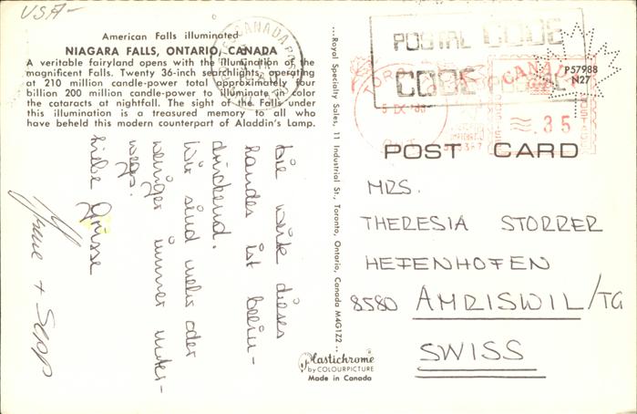 old postcard Niagara Falls Ontario American Falls illuminated postalisch gelaufen Erhaltung siehe scans