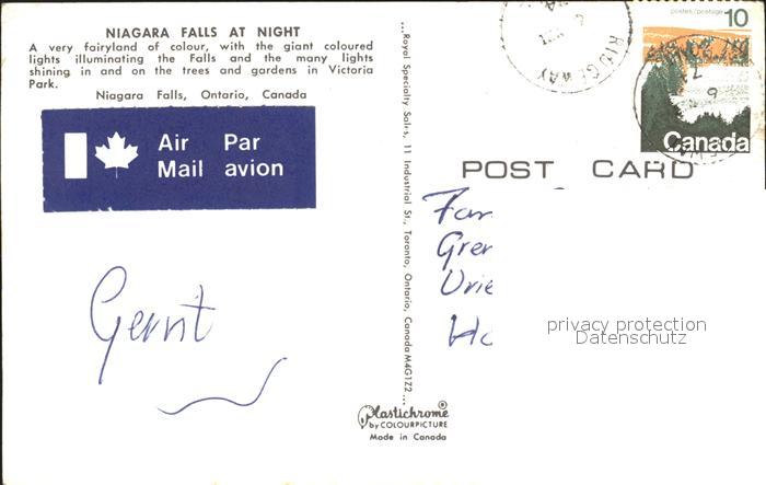 old postcard Niagara Falls Ontario bei Nacht postalisch gelaufen Erhaltung siehe scans