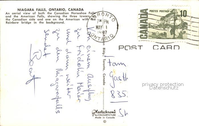 old postcard Niagara Falls Ontario Canadian Horseshoe Falls and American Falls aerial view postalisch gelaufen Erhaltung siehe scans