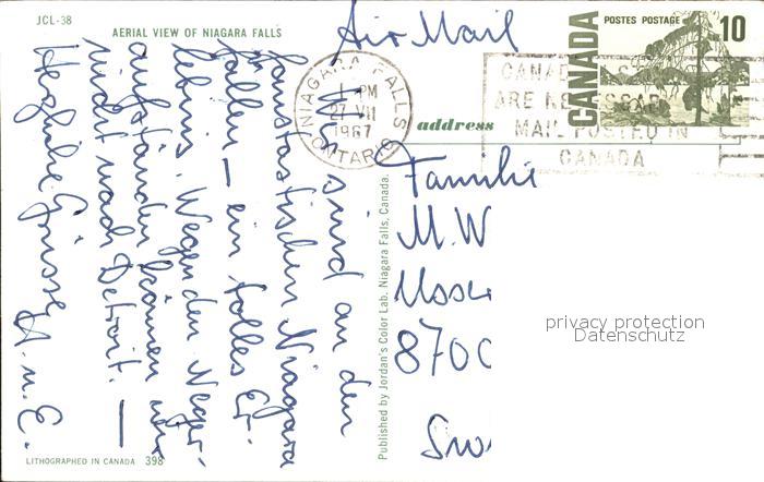 old postcard Niagara Falls Ontario Fliegeraufnahme postalisch gelaufen Erhaltung siehe scans