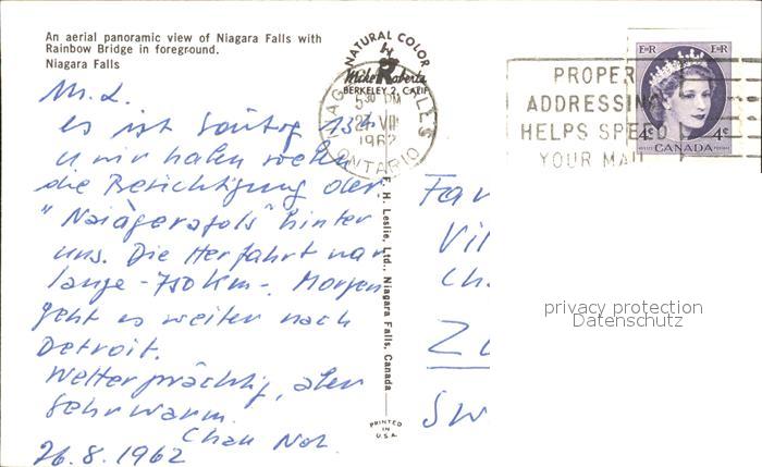 old postcard Niagara Falls Ontario Fliegeraufnahme postalisch gelaufen
