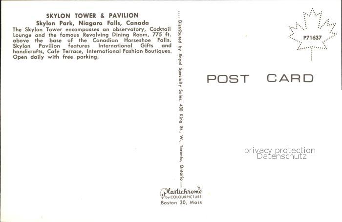 Niagara Falls Ontario Fliegeraufnahme Skylon Tower and Pavillon postalisch nicht gelaufen Erhaltung siehe scans