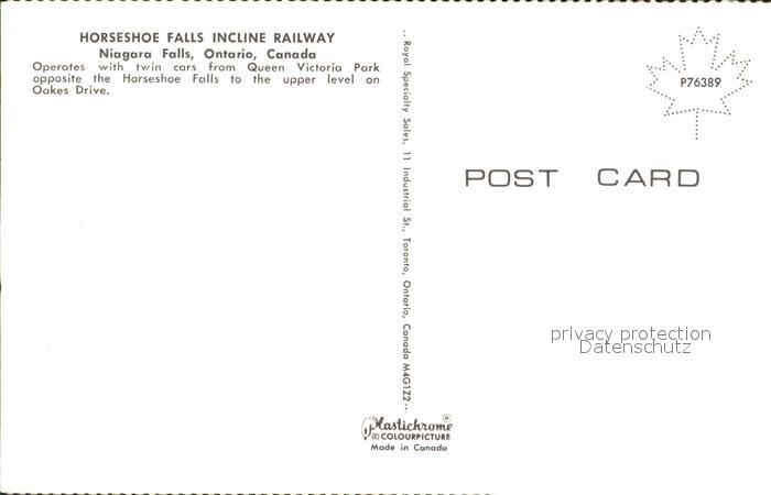 Niagara Falls Ontario Horseshoe Falls Inline Railway postalisch nicht gelaufen Erhaltung siehe scans