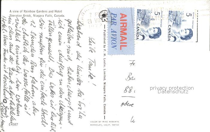 old postcard Niagara Falls Ontario Hotel Sheraton Brock postalisch gelaufen Erhaltung siehe scans