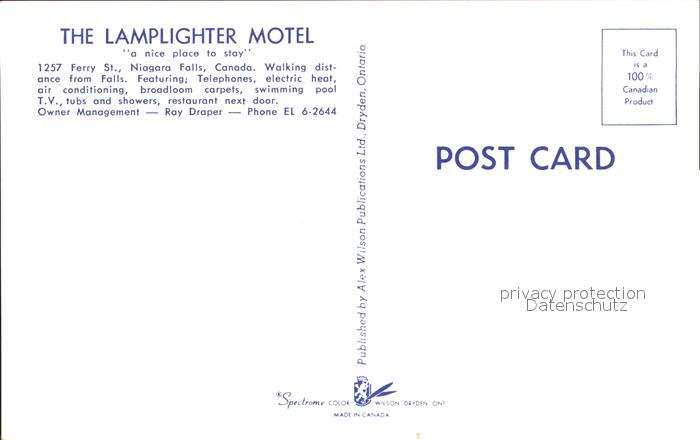 Niagara Falls Ontario Lamplighter Motel postalisch nicht gelaufen Erhaltung siehe scans