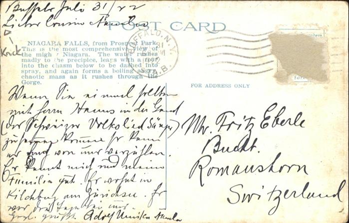 old postcard Niagara Falls Ontario Park postalisch gelaufen