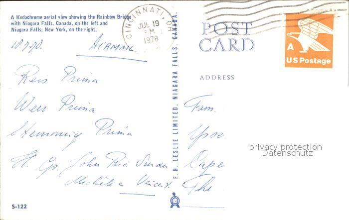 old postcard Niagara Falls Ontario Rainbow Bridge with Niagara Falls New York aerial view postalisch gelaufen Erhaltung siehe scans