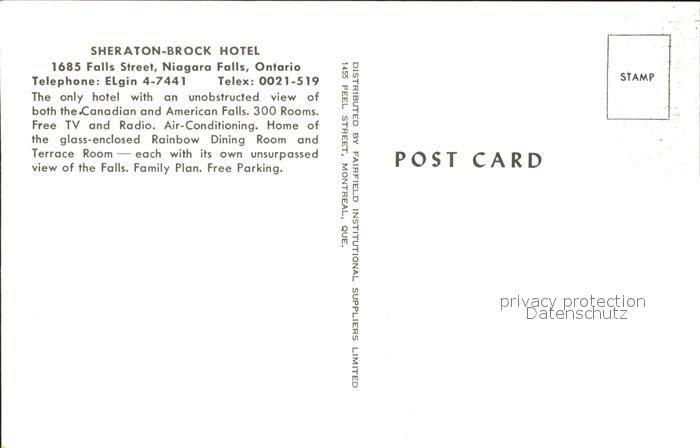Niagara Falls Ontario Sheraton-Brock Hotel postalisch nicht gelaufen Erhaltung siehe scans