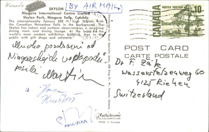 old postcard Niagara Falls Ontario Skylon Tower Horseshoe Falls aerial view postalisch gelaufen Erhaltung siehe scans