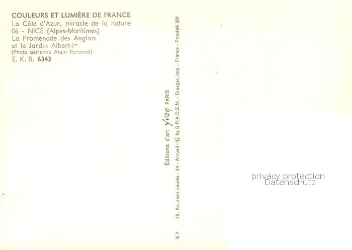 13785364 Nice 06 Nizza Promenade des Anglais et le Jardin Albert Ier Côte d Azur vue aérienne postalisch nicht gelaufen Fliegeraufnahme Erhaltung siehe scans [FriedD77] Fliegeraufnahme Frie Katcode 11170006206088
