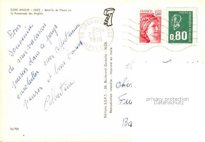 12649327 carte postale Nice Alpes Maritimes Bataille de Fleurs sur la promenade des Anglais Cote d Azur postalisch gelaufen Erhaltung siehe scans [FriedD77] KatCode: 11170006206088