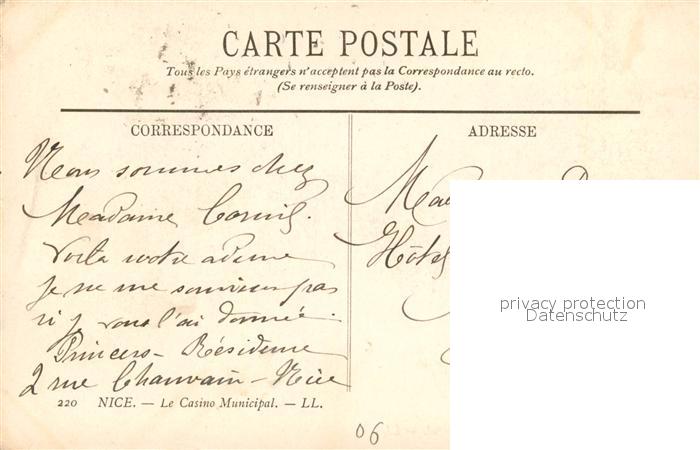 13493233 carte postale Nice Alpes Maritimes Casino Municipal postalisch gelaufen Erhaltung siehe scans [FriedD77] KatCode: 11170006206088
