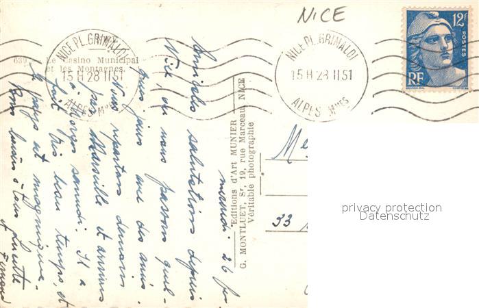 13535250 carte postale Nice Alpes Maritimes Casino Municipal et les Montagnes postalisch gelaufen Erhaltung siehe scans [FriedD77] KatCode: 11170006206088