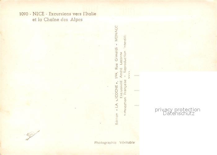 13580793 Nice Alpes Maritimes Excursions vers l’Italie et la Chaîne des Alpes a vol d oiseau postalisch nicht gelaufen Erhaltung siehe scans [FriedD77] KatCode: 11170006206088