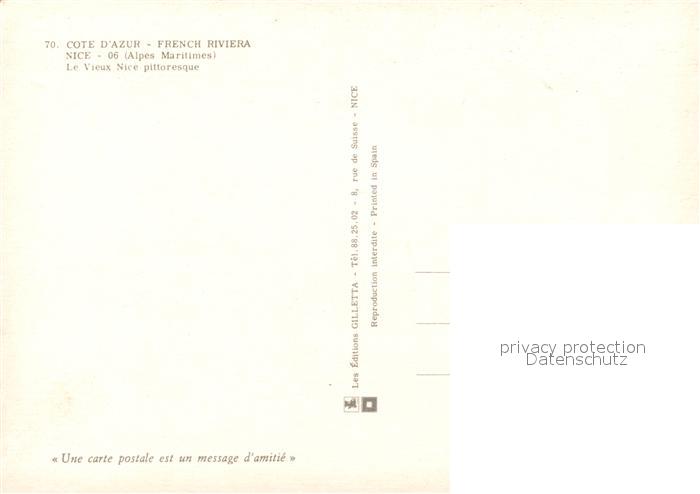 13599627 Nice Alpes Maritimes Gasse postalisch nicht gelaufen Erhaltung siehe scans [PaolaD17] Paol Katcode 11170006206088