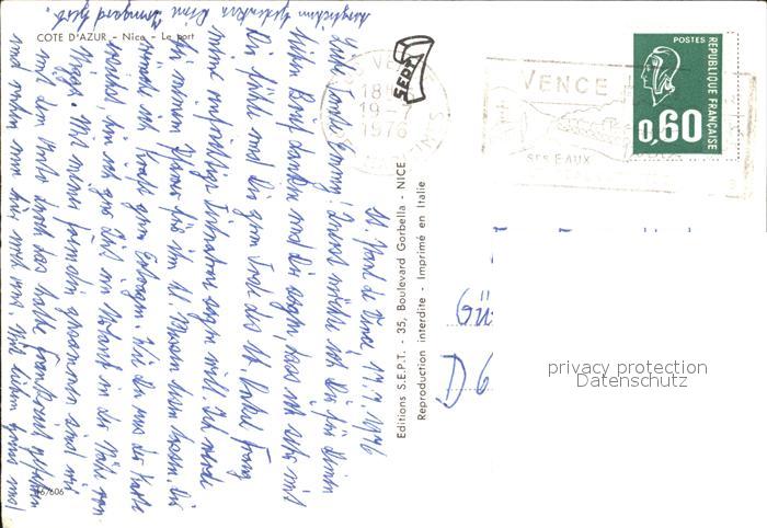 12491543 carte postale Nice Alpes Maritimes Hafen postalisch gelaufen Erhaltung siehe scans KatCode: 11170006206088