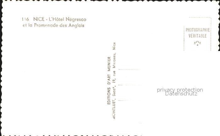 12600749 Nice Alpes Maritimes Hotel Negresco postalisch nicht gelaufen Erhaltung siehe scans [LiesaD40] KatCode: 11170006206088