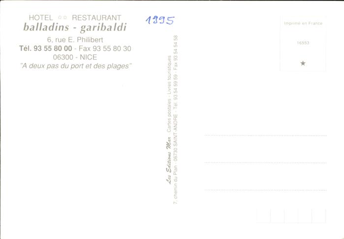 11431585 Nice Alpes Maritimes Hotel Restaurant Balladins Garibaldi Port Plage Beateau KatCode 11170006206088