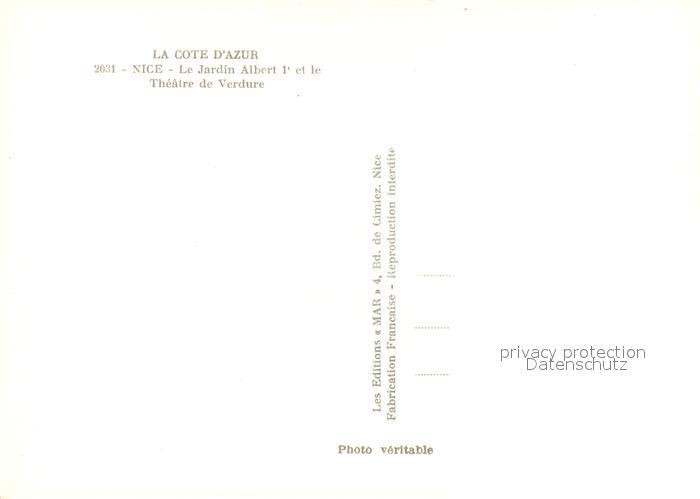 13361037 Nice Alpes Maritimes Jardin Albert 1e et le Théâtre de Verdure postalisch nicht gelaufen Erhaltung siehe scans [FriedD77] KatCode: 11170006206088