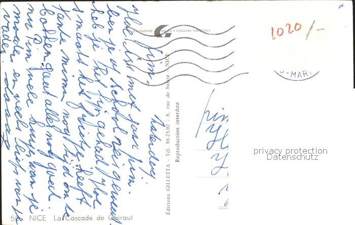 12306064 carte postale Nice Alpes Maritimes La Cascade postalisch gelaufen Erhaltung siehe scans KatCode: 11170006206088