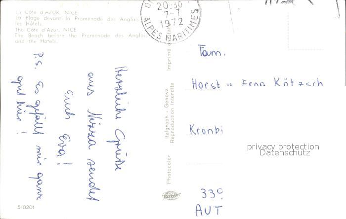 12017290 carte postale Nice Alpes Maritimes La Plage devant la Promenade des Anglais et les Hotels postalisch gelaufen Erhaltung siehe scans KatCode: 11170006206088