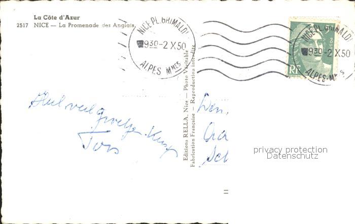 12302675 carte postale Nice Alpes Maritimes La Promenade des Anglais postalisch gelaufen Erhaltung siehe scans KatCode: 11170006206088