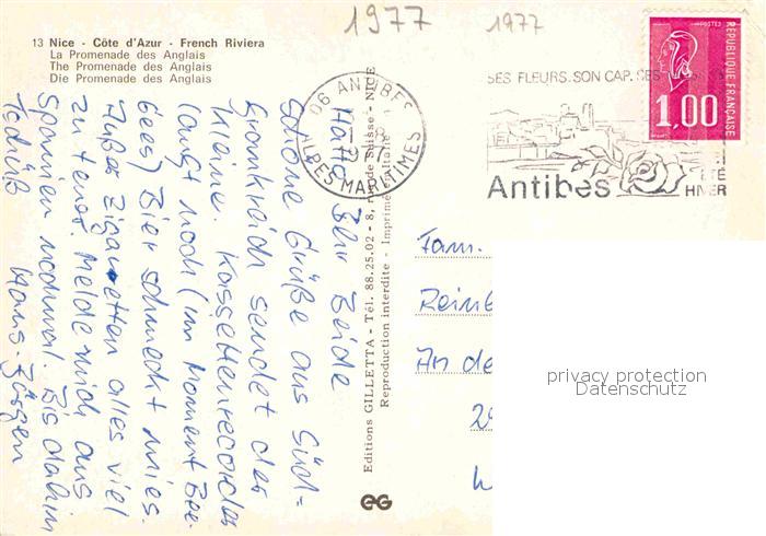12899076 carte postale Nice Alpes Maritimes La Promenade des Anglais postalisch gelaufen Erhaltung siehe scans [FriedD77] KatCode: 11170006206088