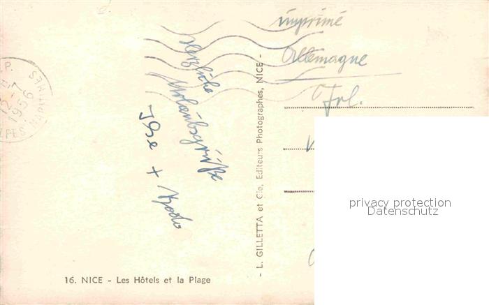 12643802 carte postale Nice Alpes Maritimes Les Hotels et la Plage postalisch gelaufen Erhaltung siehe scans [FriedD77] KatCode: 11170006206088