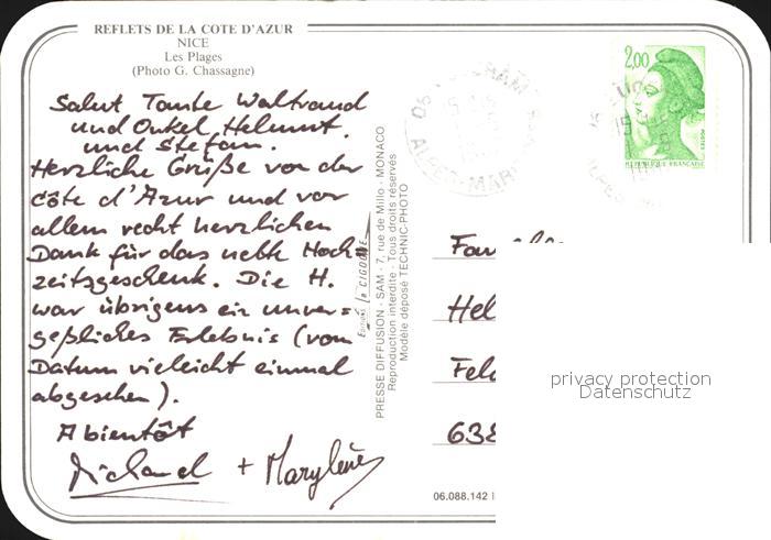 12432692 carte postale Nice Alpes Maritimes Les Plages postalisch gelaufen Erhaltung siehe scans KatCode: 11170006206088