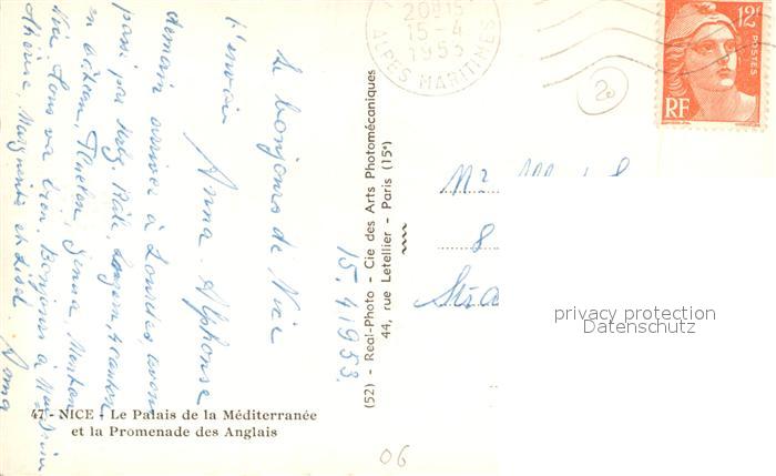 13493232 carte postale Nice Alpes Maritimes Palais de la Méditerranée Promenade des Anglais postalisch gelaufen Erhaltung siehe scans [FriedD77] KatCode: 11170006206088