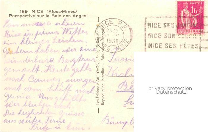 12763543 carte postale Nice Alpes Maritimes Pespective sur la Baie des Anges postalisch gelaufen Erhaltung siehe scans [LiesaD40] KatCode: 11170006206088