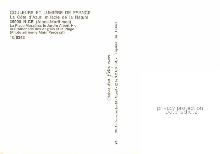 12621309 Nice Alpes Maritimes Place Massena Jardin Albert Promenade des Anglais et la Plage postalisch nicht gelaufen Erhaltung siehe scans [NatalD47] KatCode: 11170006206088