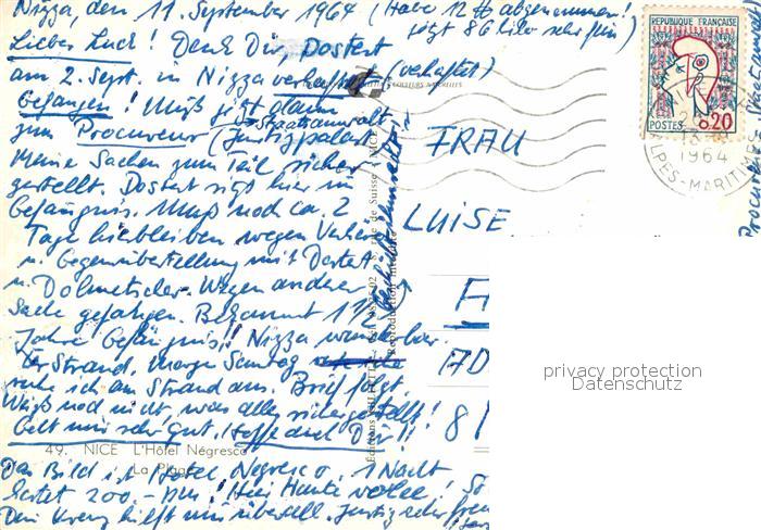 12904338 carte postale Nice Alpes Maritimes Plage Hotel Negresco postalisch gelaufen Erhaltung siehe scans [LiesaD40] KatCode: 11170006206088